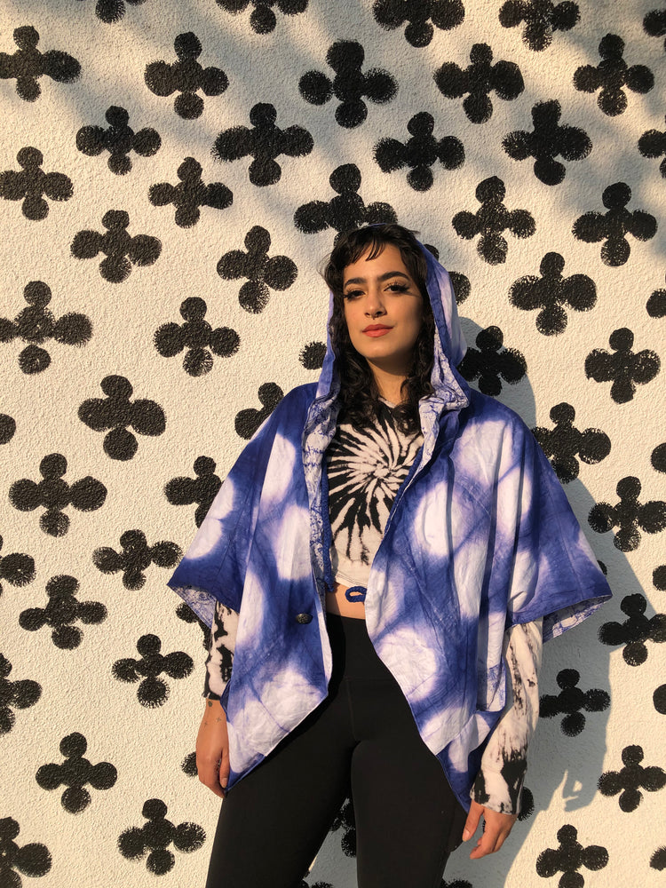 Kimcho is my version of a Kimono and a Poncho all in one. Most of my kimchos are reversable making these functional wearable pieces of art.