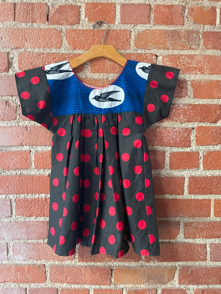 These are hand-made Mexican style dresses for your little ones. They're all made with pre-shrunk fabrics. The collar is a little wider to fit your kids growing head and is hand stitched.