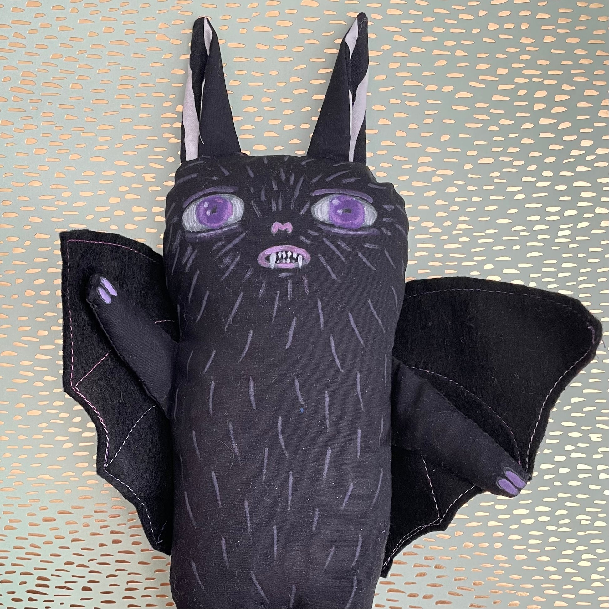The Bat Baddie loves to dance once they hear music. Each one is unique and their faces are hand painted. They are all made and filled with fabric remnants. Makes a great gift for bat lovers.