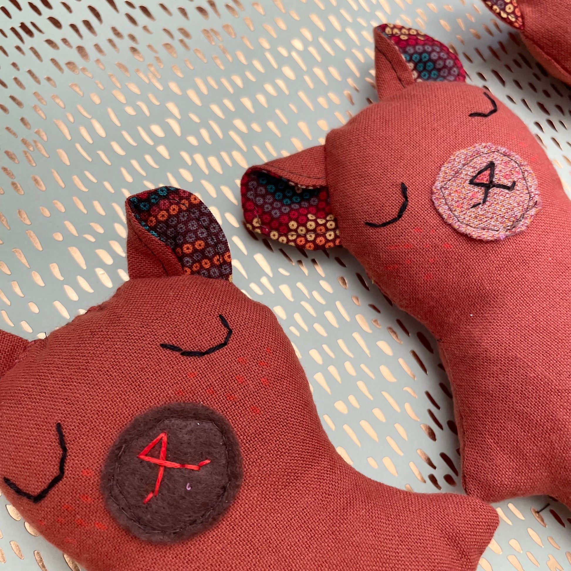 This Bear Bear is handmade and filled with fabric remnants. Face is hand-stitched.