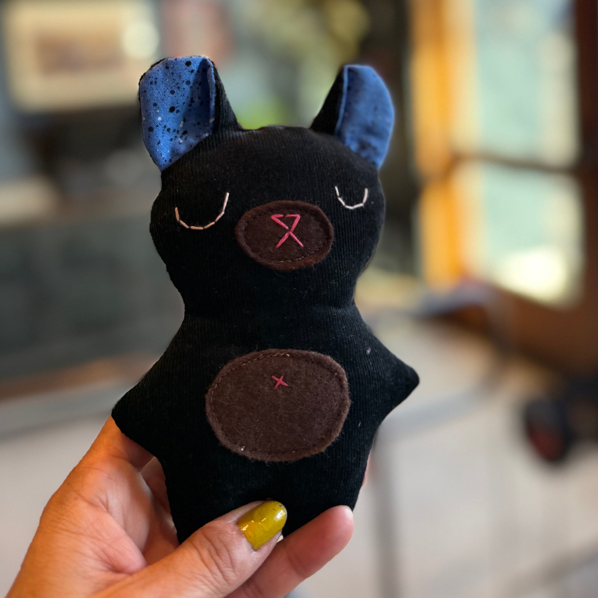 This Bear Bear is handmade and filled with fabric remnants. Face is hand-stitched.