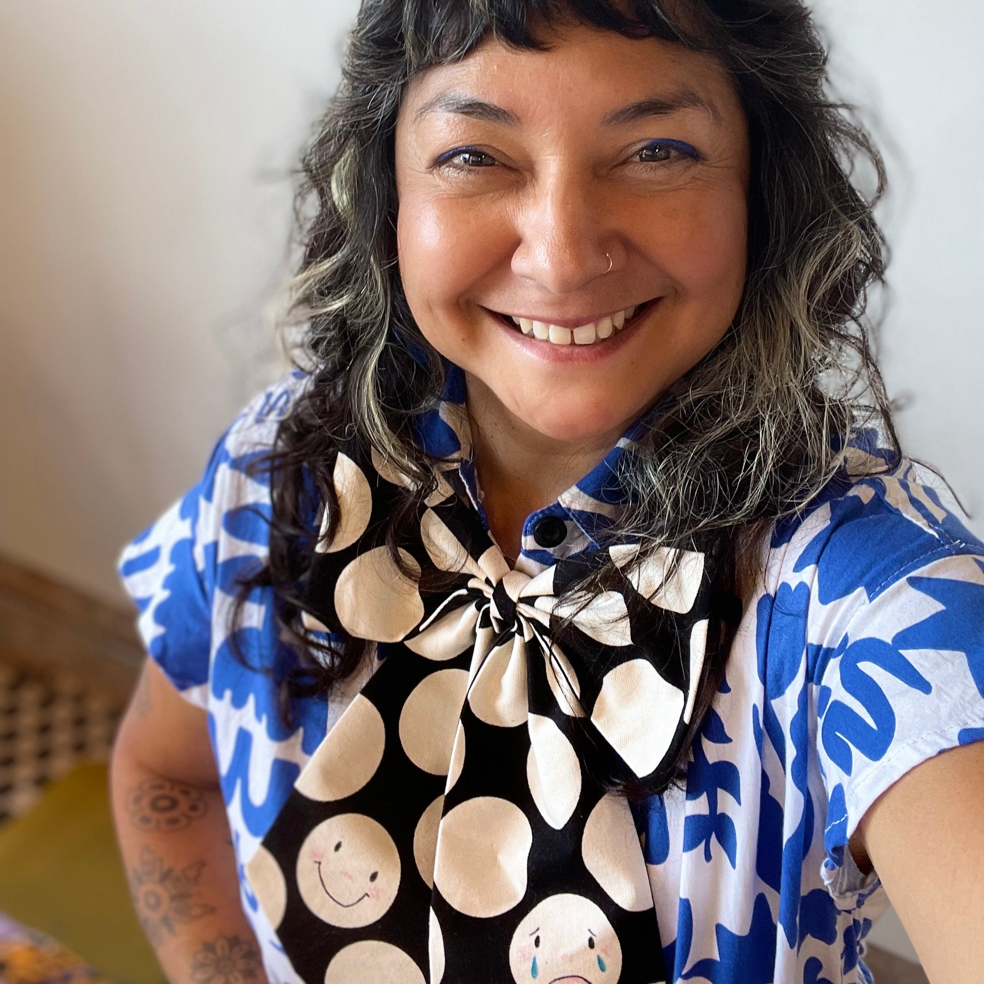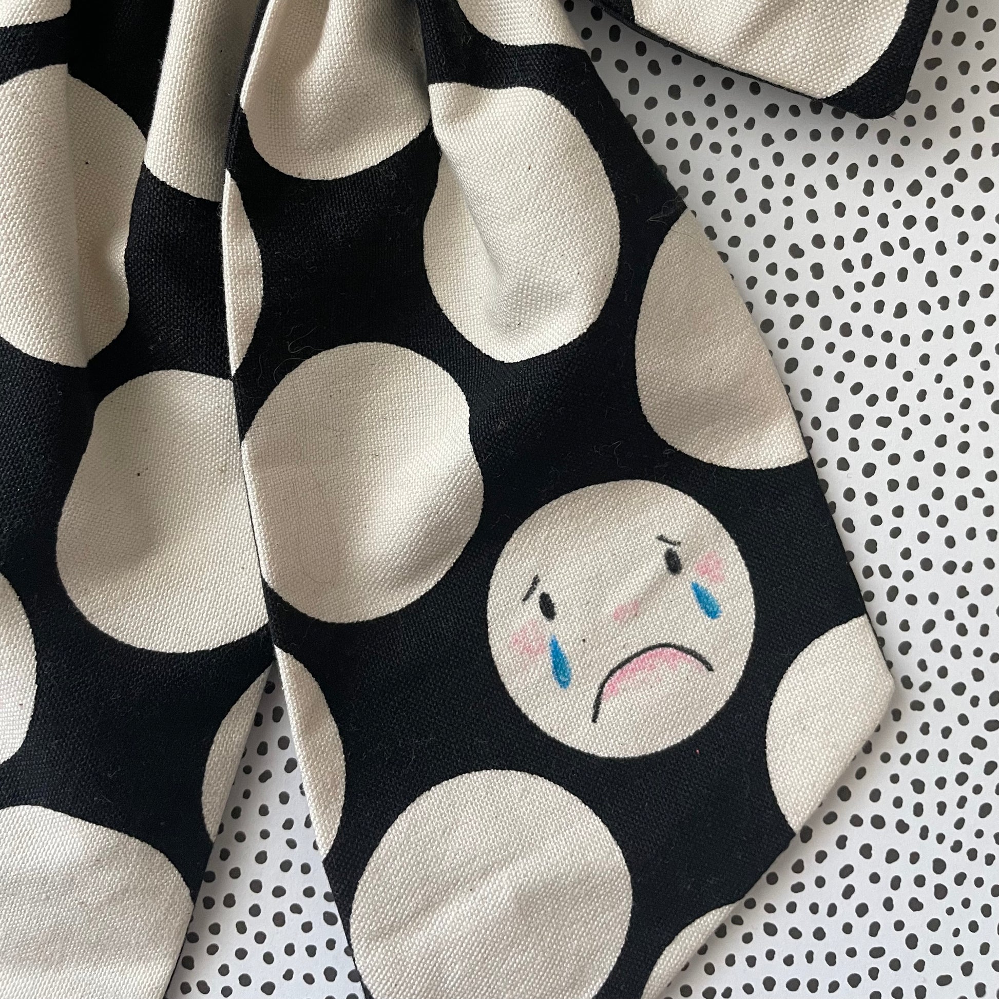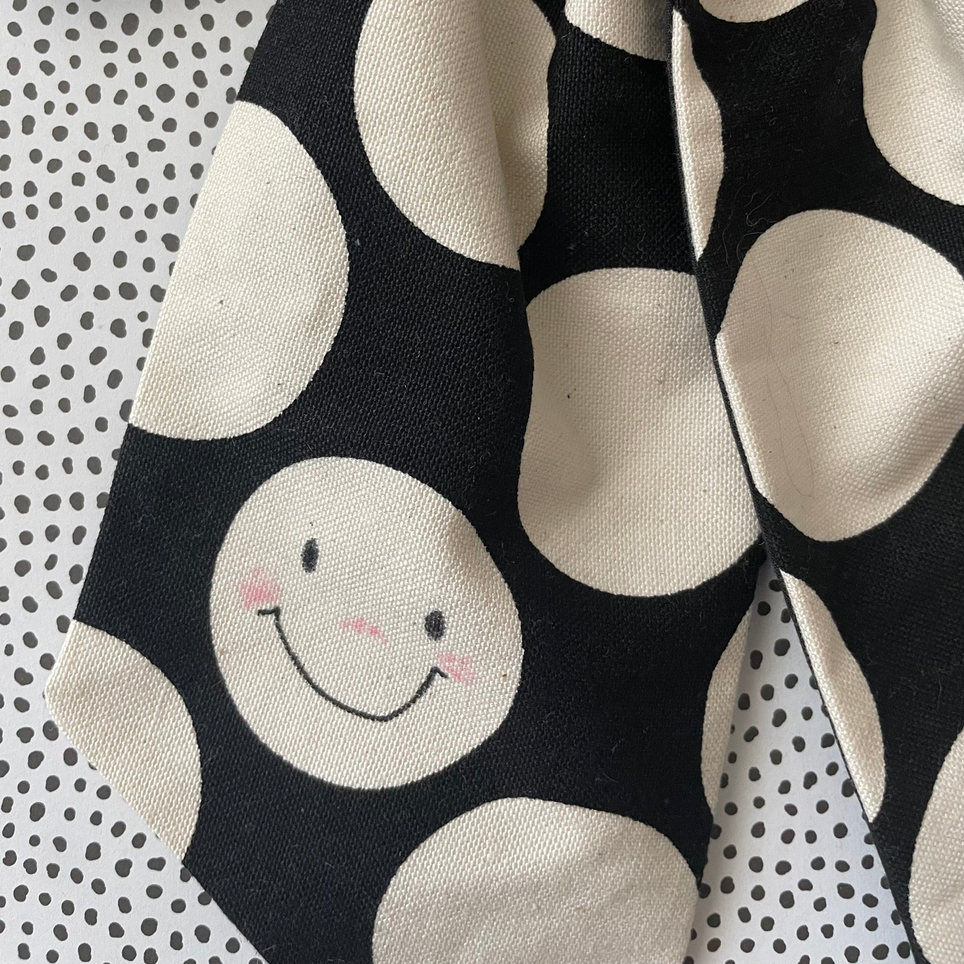 Handmade Big bow with a happy face and a sad face on each bow end. Attached with safety pin on any top.