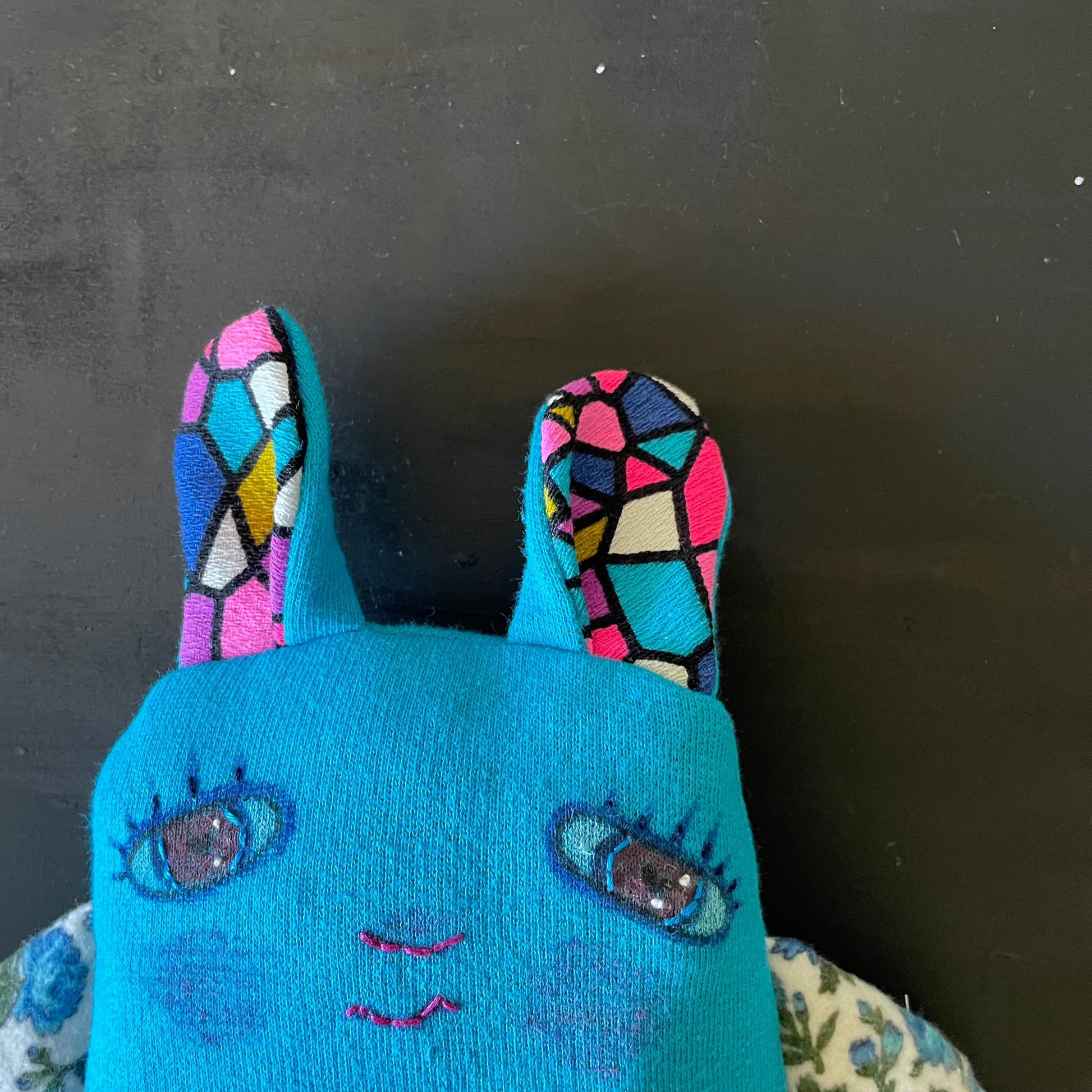 Love Bunny has a hand painted face and made and filled with fabric remnants. Great gift for bunny lovers!