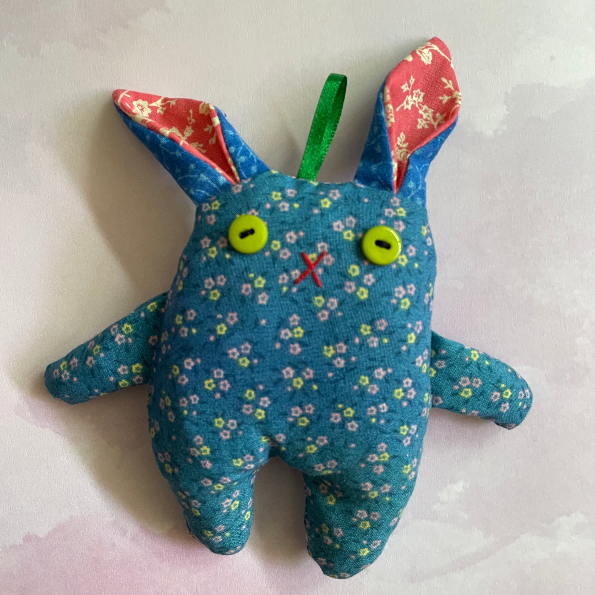 Little conejitos (Bunnies) all made and filled from fabric remnants. They have button eyes. Ideal for children 4 years & up !