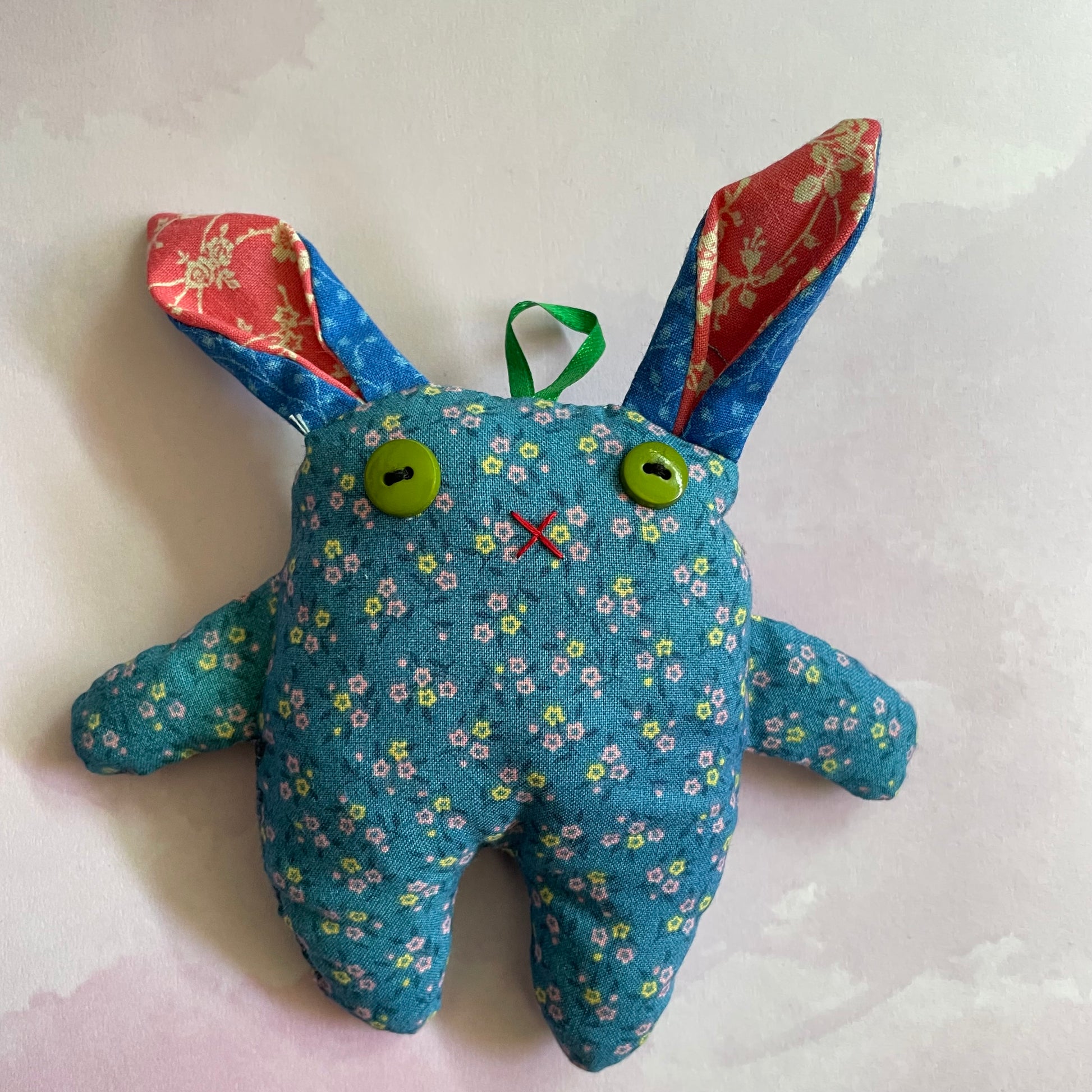Little conejitos (Bunnies) all made and filled from fabric remnants. They have button eyes. Ideal for children 4 years & up !