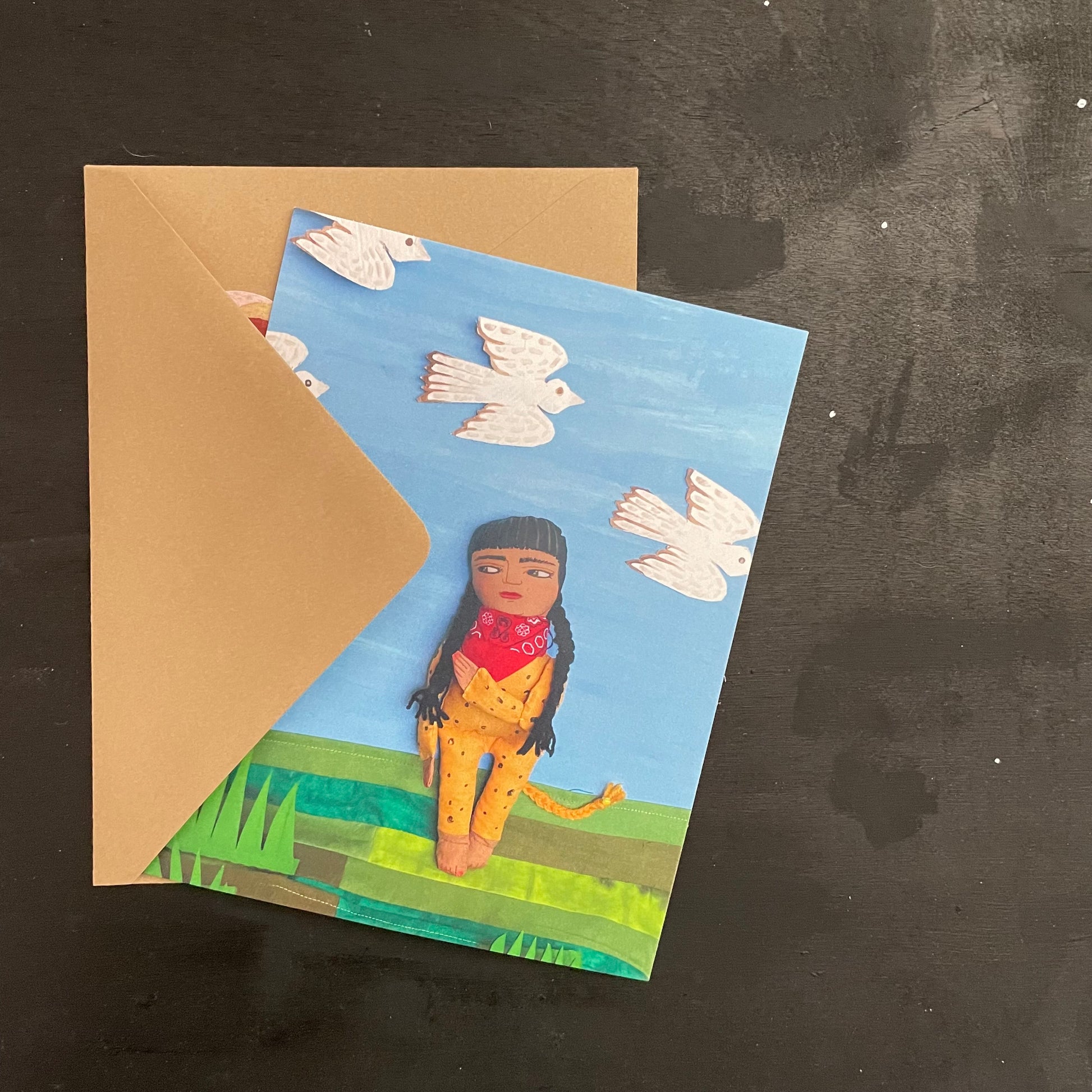 This is a print of a Jaguar doll that was part of a 3DArt installation I did for Madre Tierra at the Fullerton Museum Center this past April 2024. Comes with 2 blank notes to write your own message. The print is blank in back too. Can be put in a picture frame.