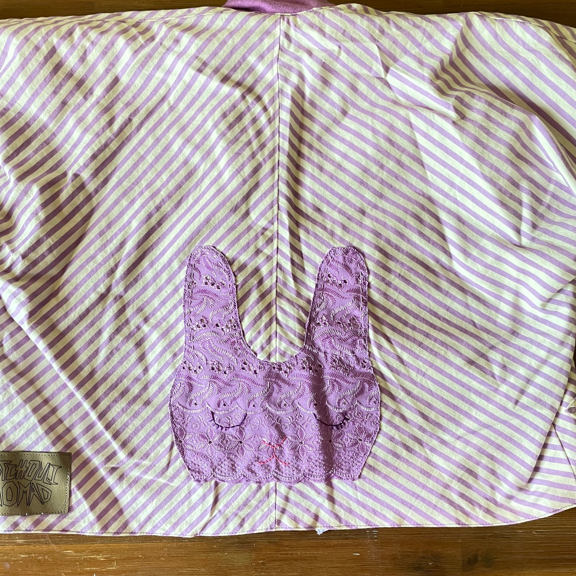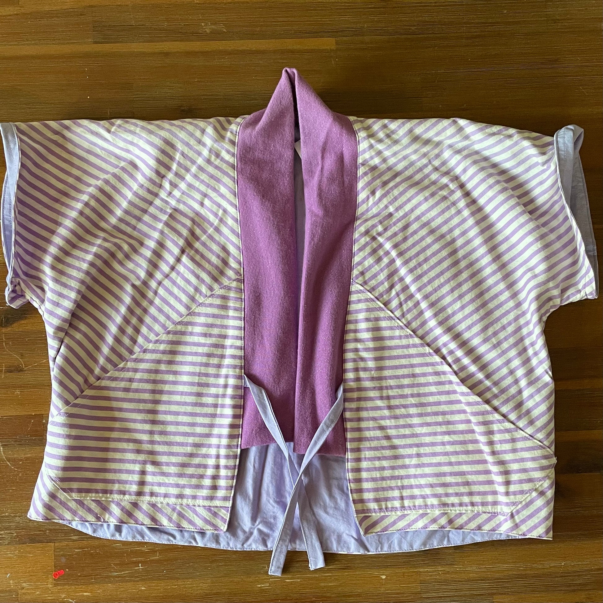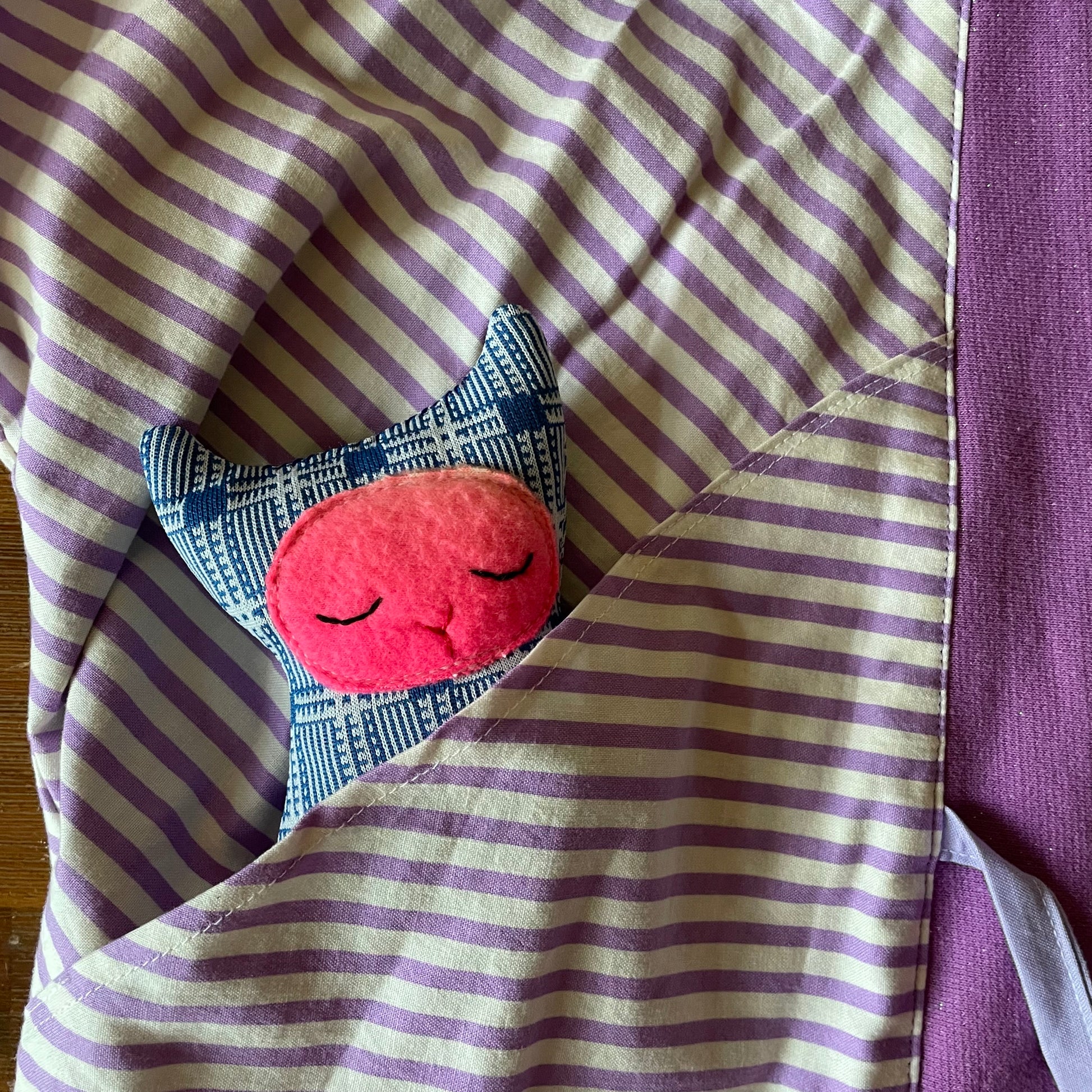 Handmade Mini Kimcho made from limited fabrics. Has pockets in the front. See the bunny on back in this Kimcho. Ties in front.