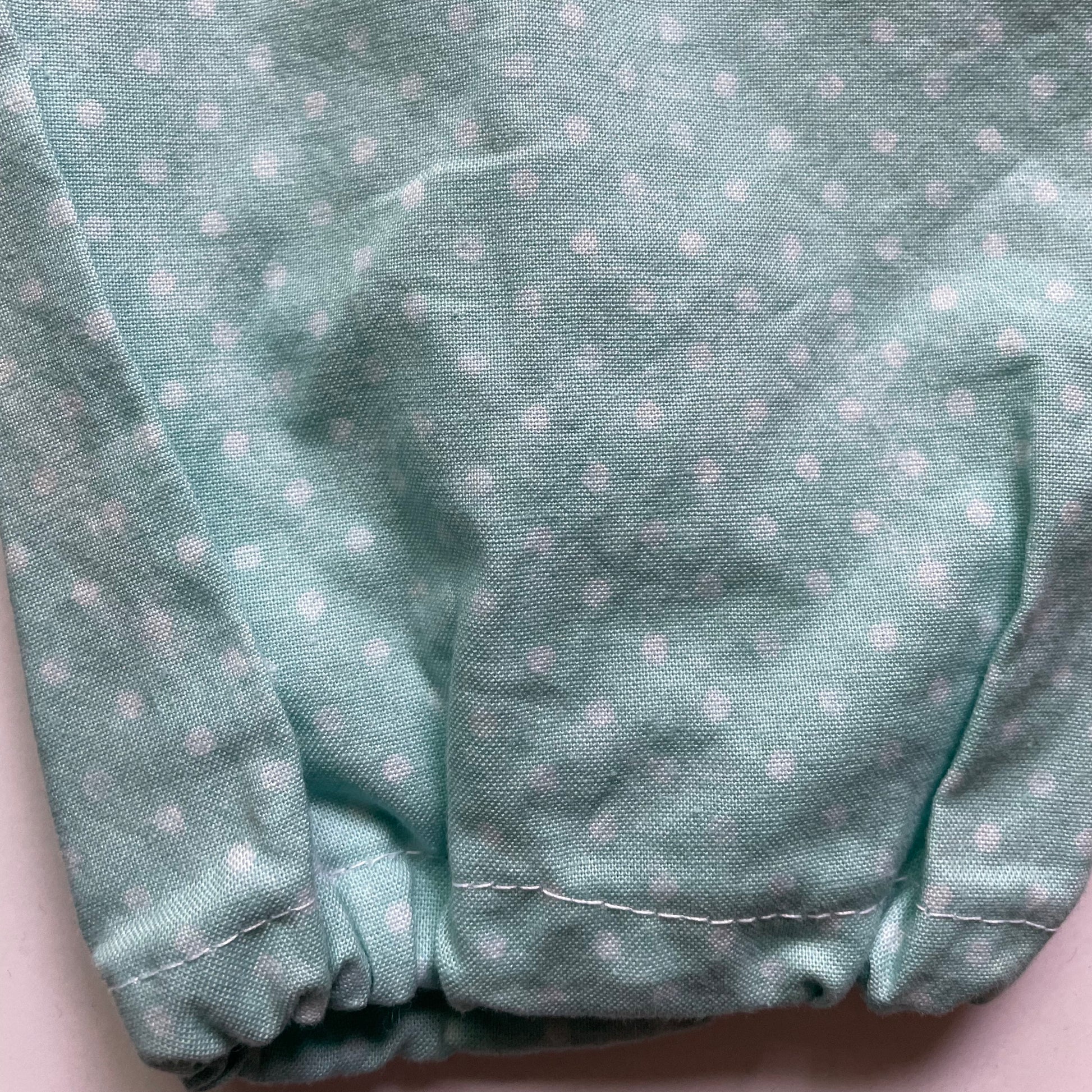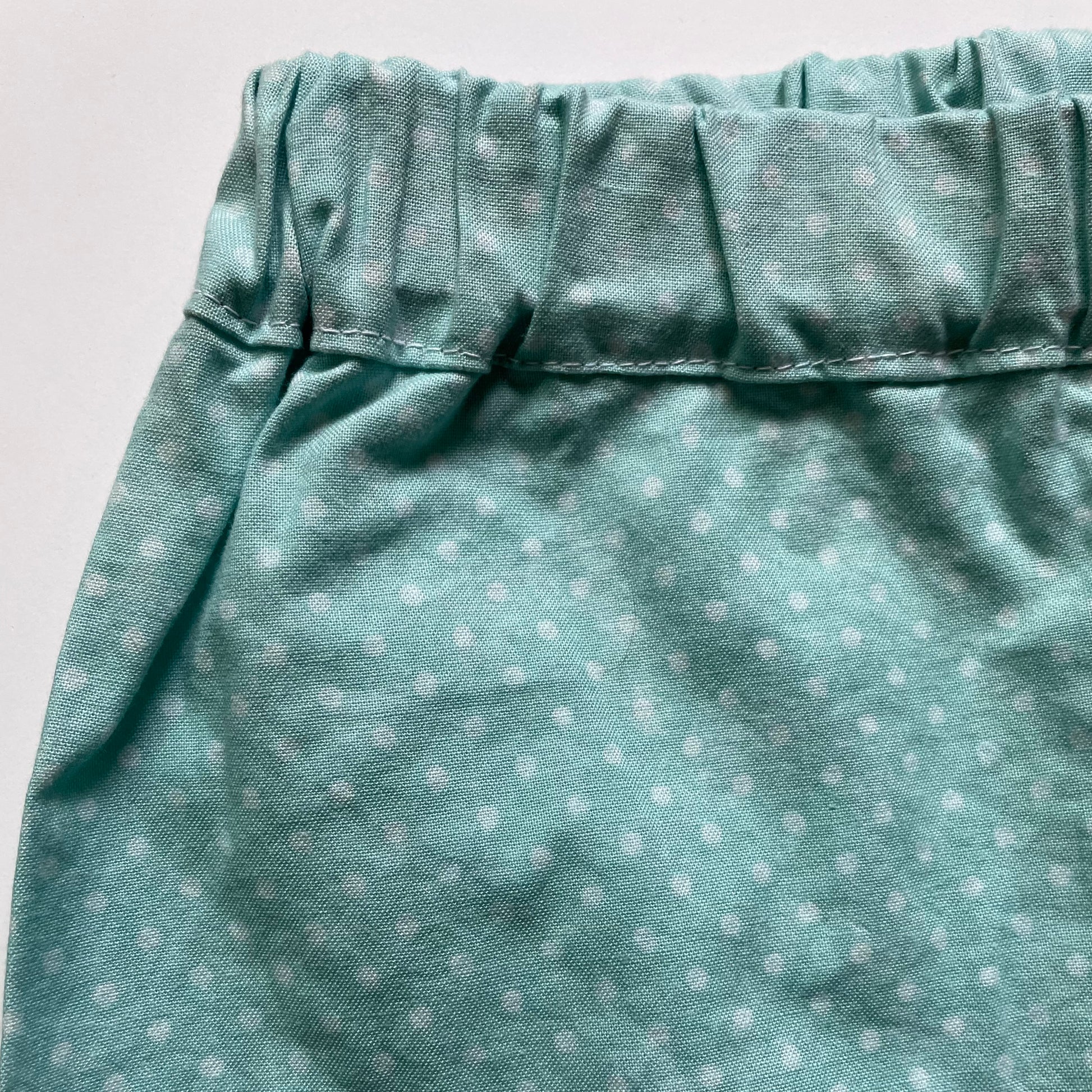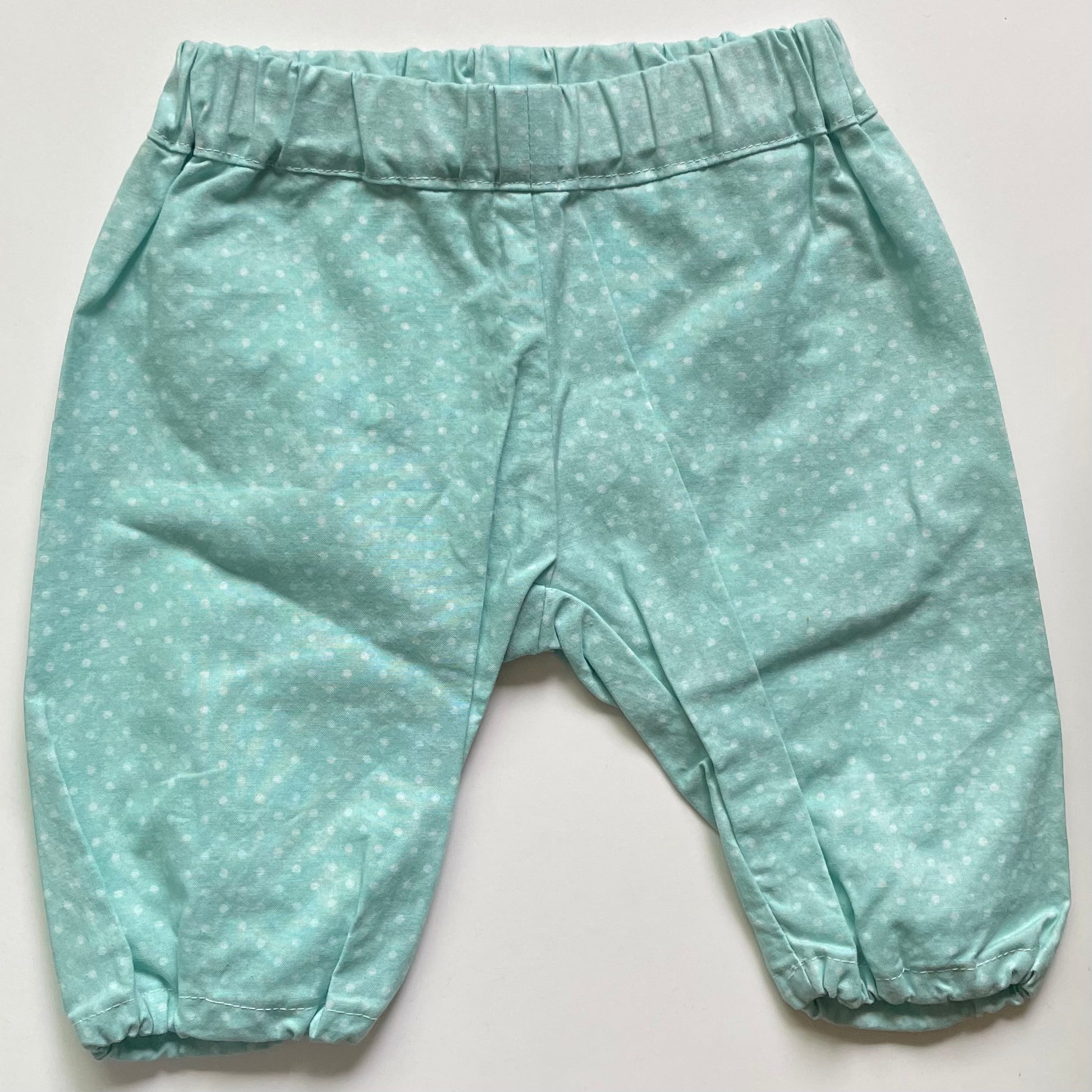 These are hand-made 18 months sized pants. Has elastic band at the waist.