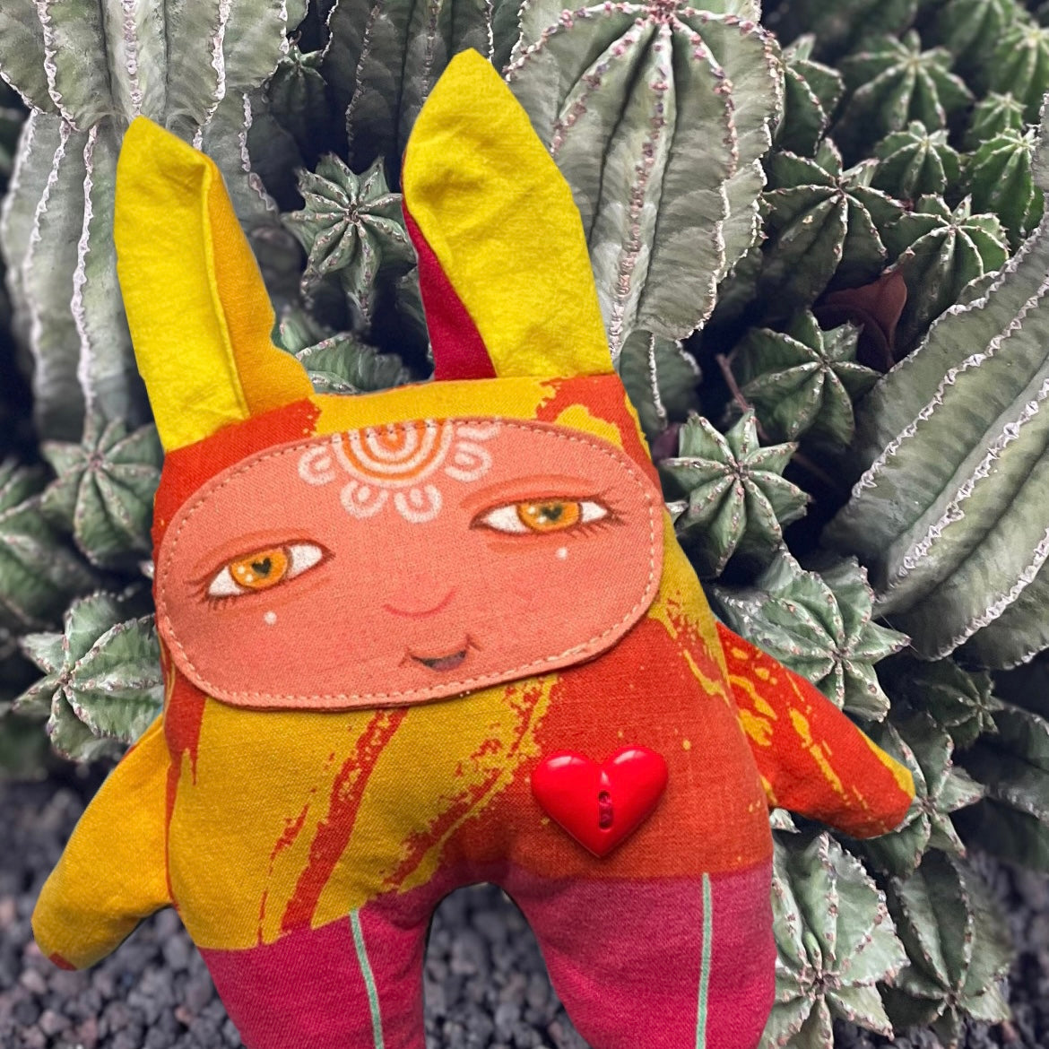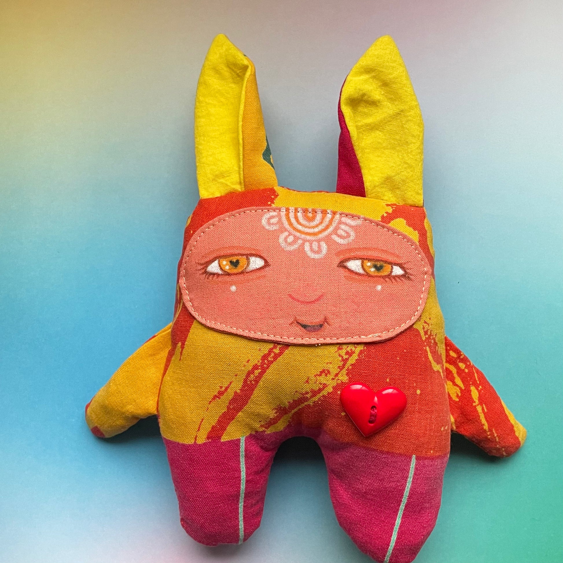 Love Bunny has a hand painted face and made and filled with fabric remnants. Great gift for bunny lovers!