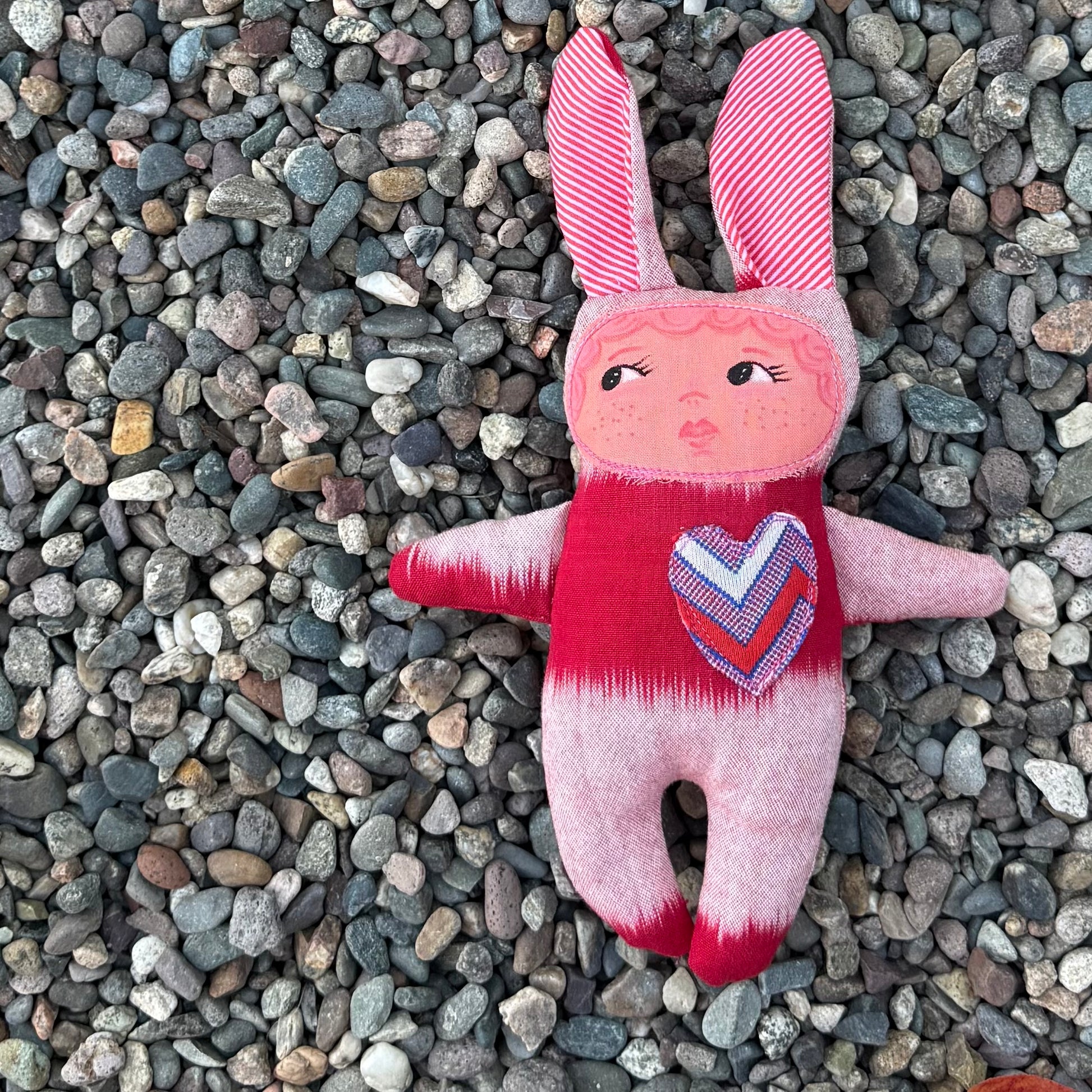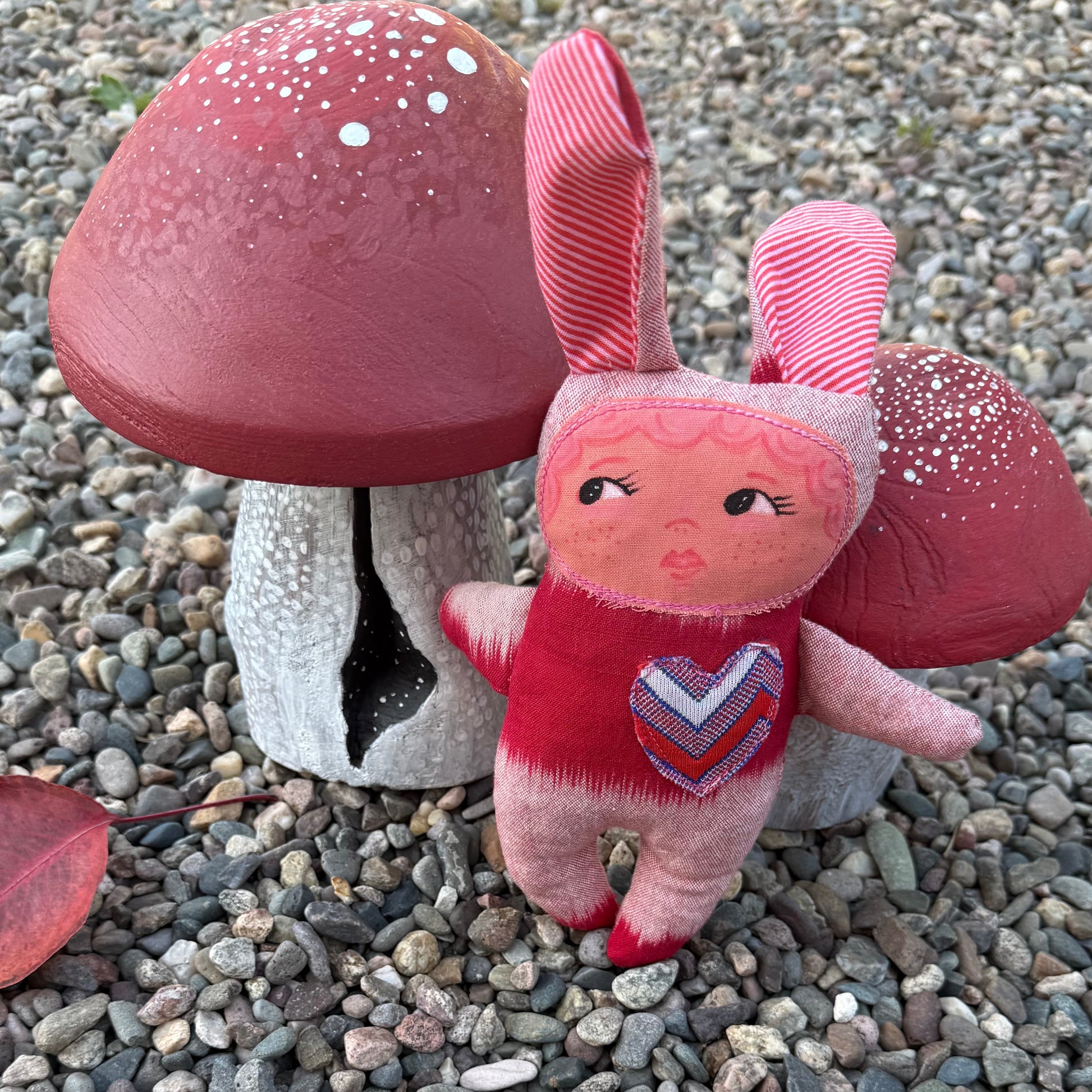 This super cute love misfit is all hand made and filled with fabric remnants making it a zero waste toy!
