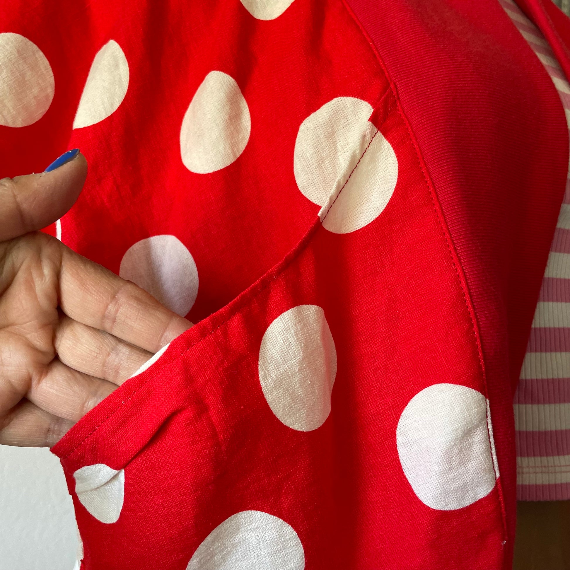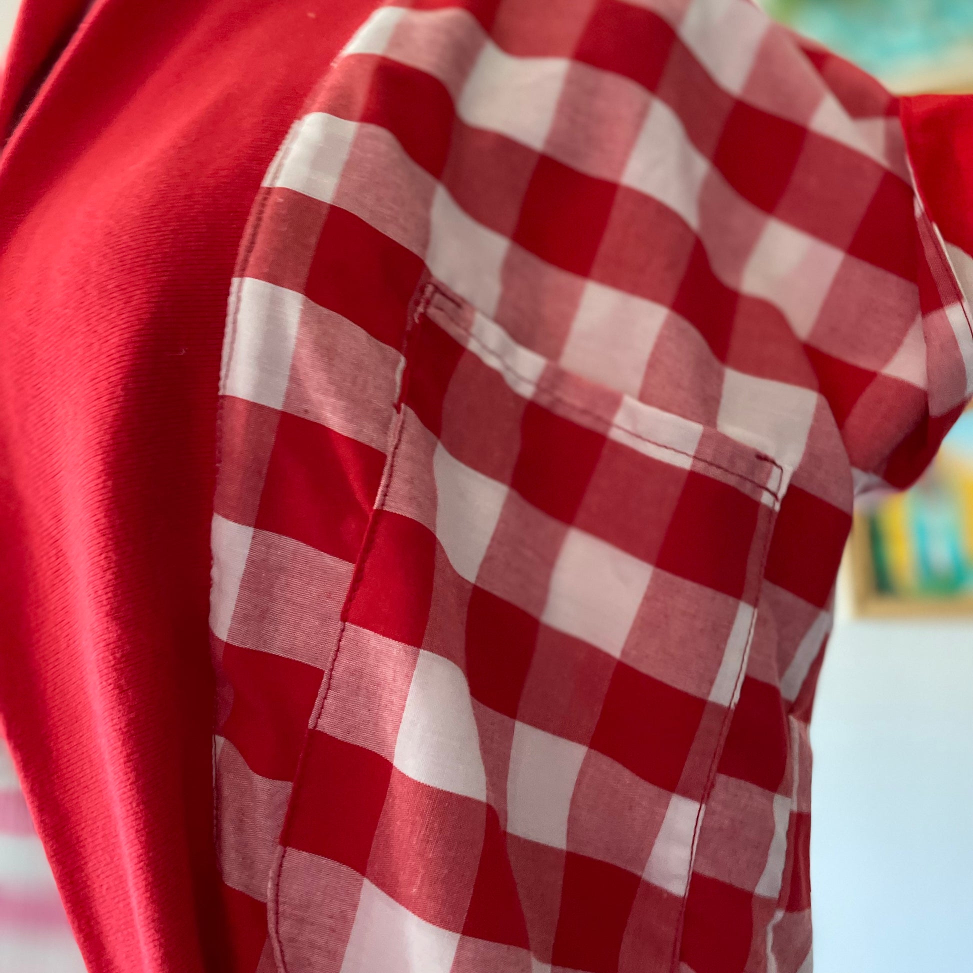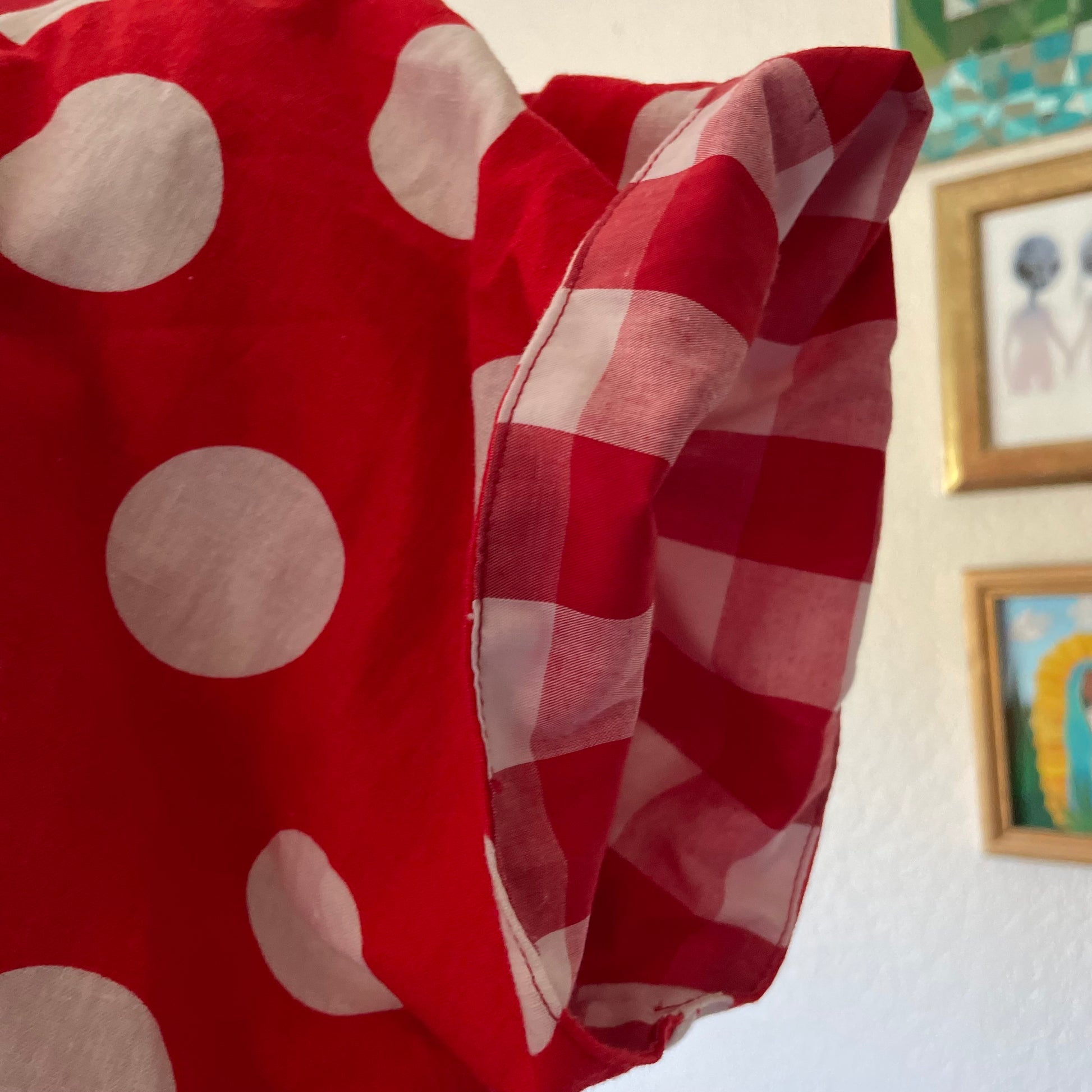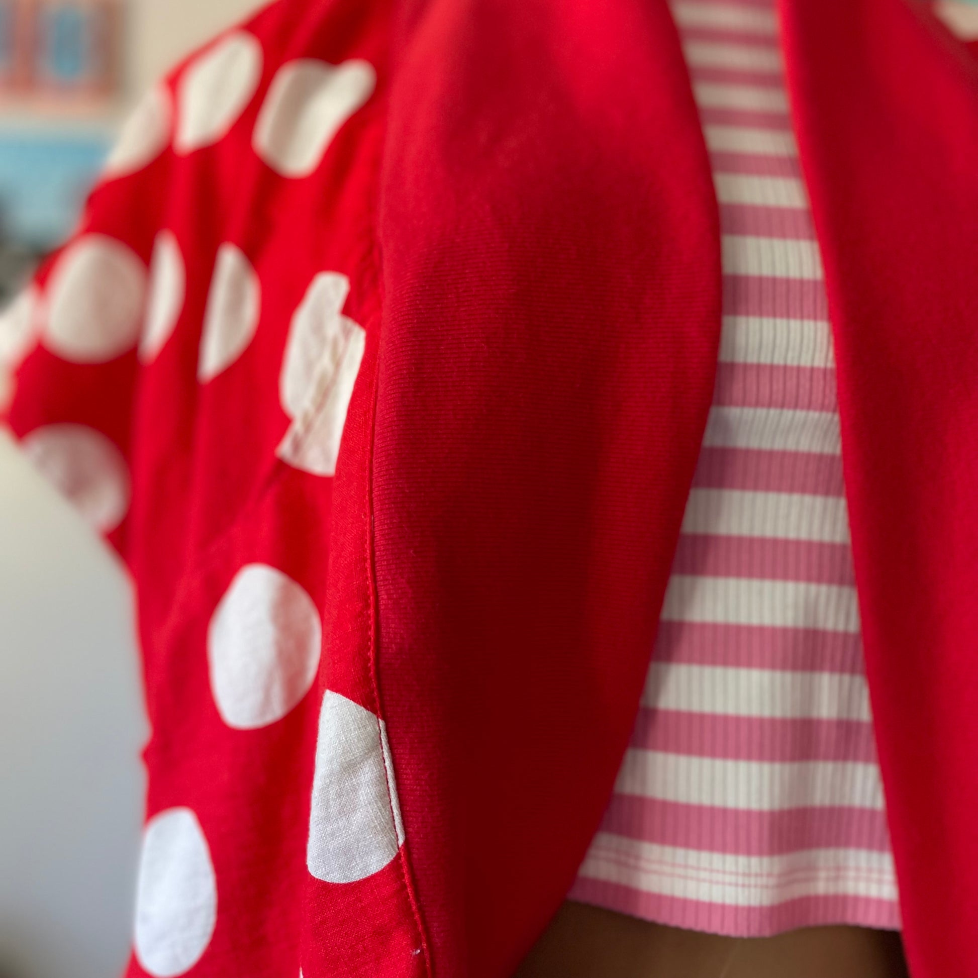 This is a super cute reversible cover up for when it’s not too cold. Has pockets on each side. Made from limited & repurposed fabrics. All fabrics are pre-shrunk.