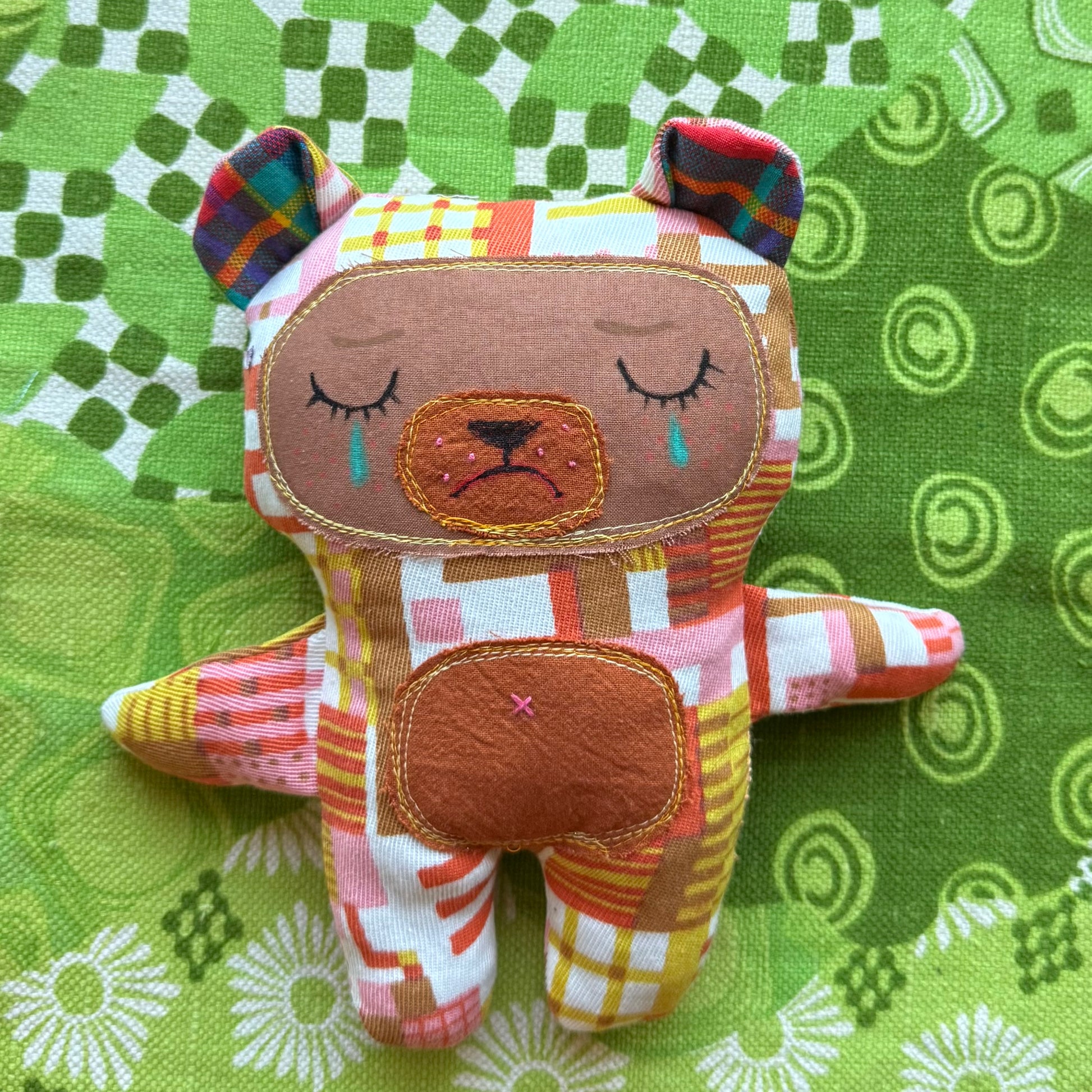 This bear has a hand painted, stitched face and made from fabric remnants. Has a broken heart attached to hands. Recommend for 3 years and up. Great gift for bunny lovers!