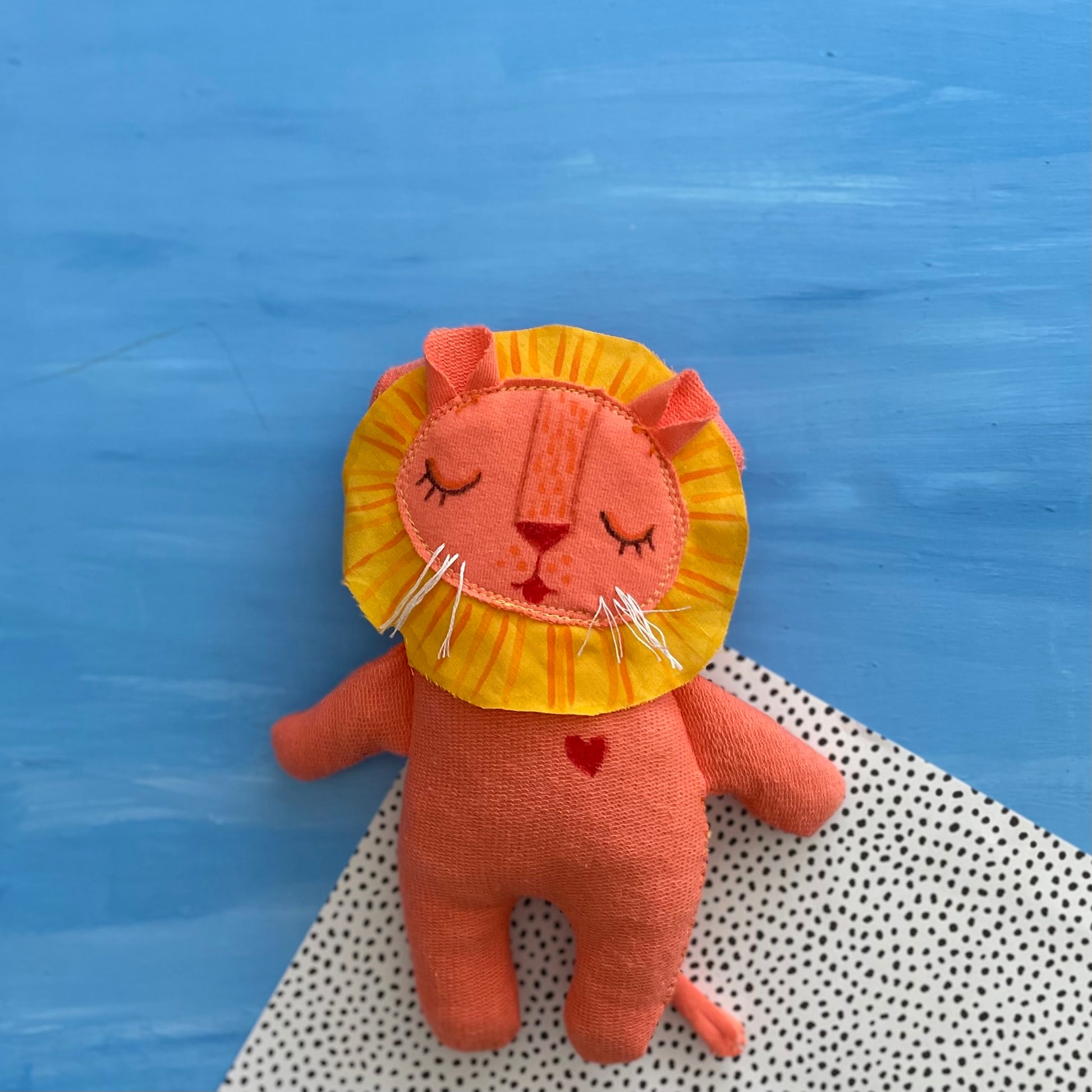 This lion has a hand painted face and made from fabric remnants. Great gift for lion lovers!