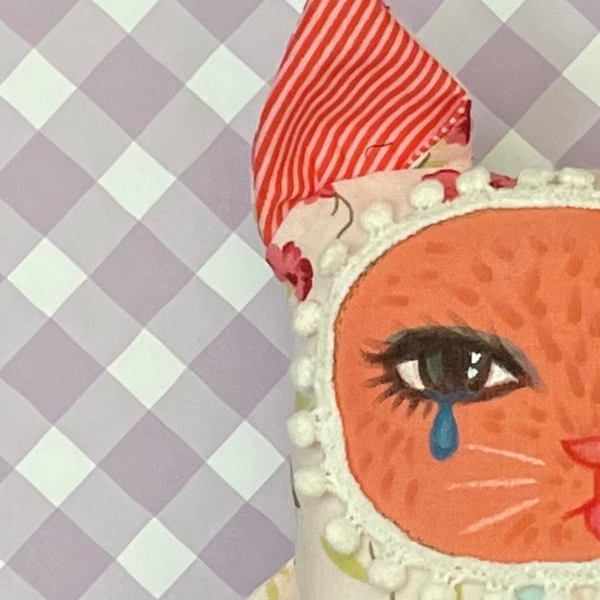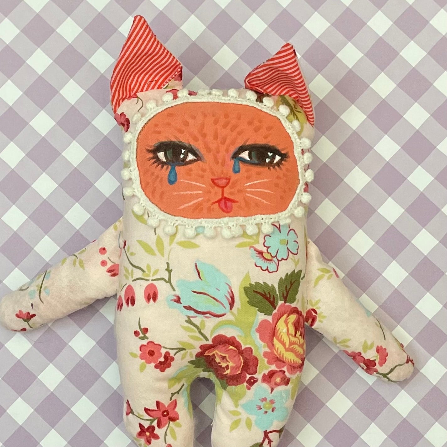 This Kitty has a hand painted face and made from fabric remnants. Recommend for 3 years and up. Great gift for kitty lovers!