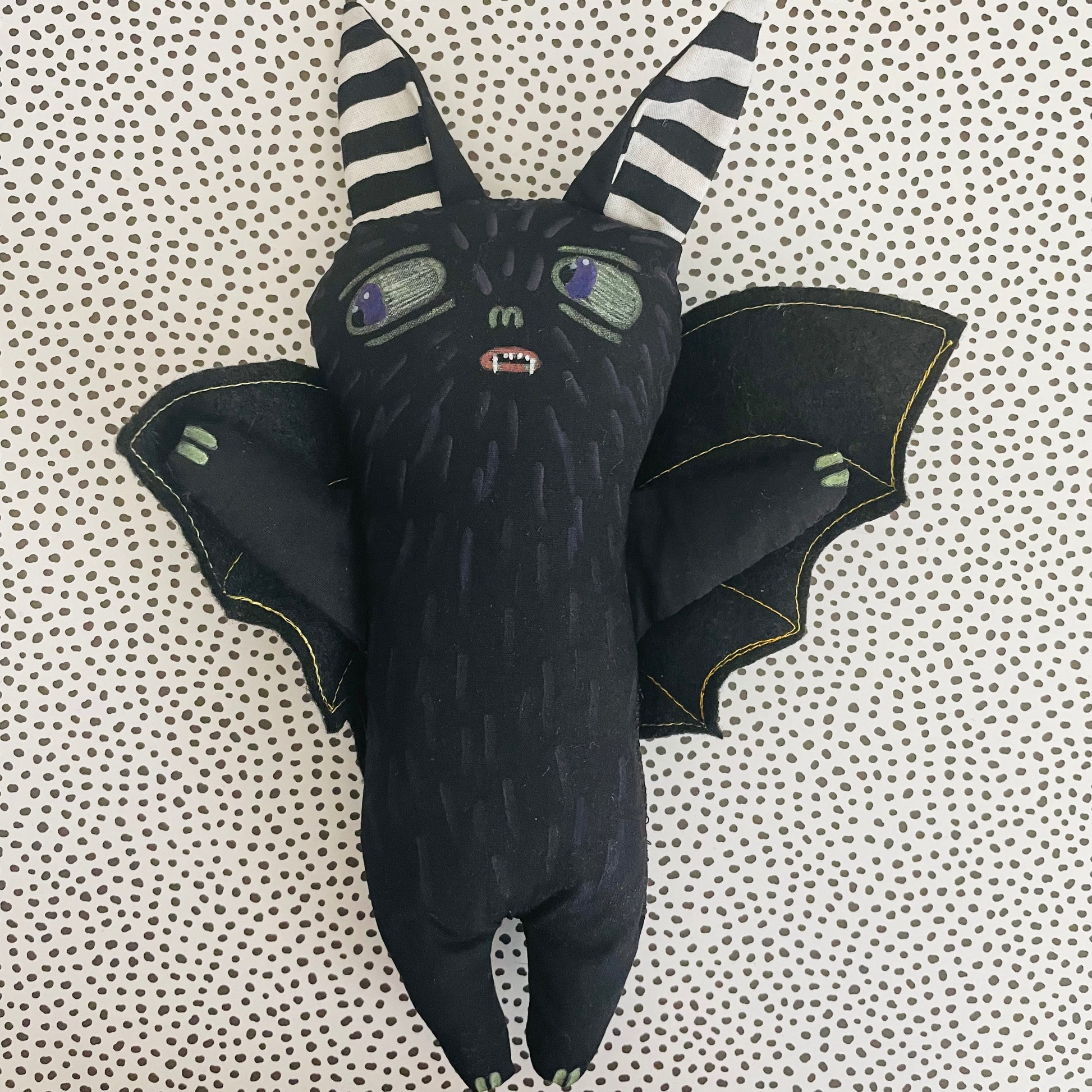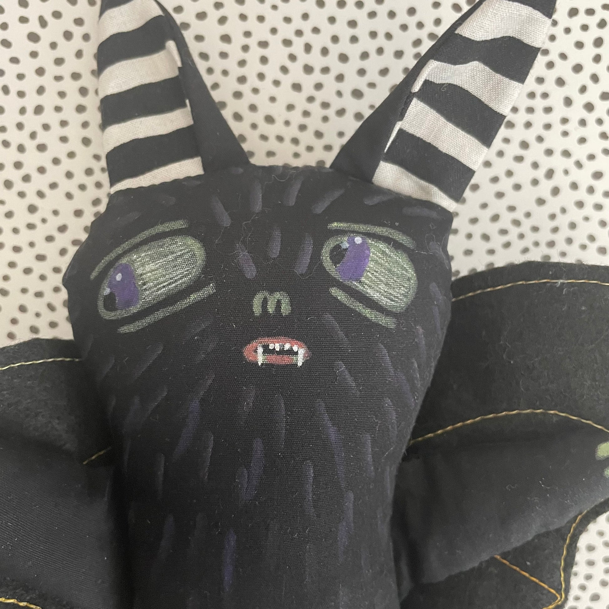 The Bat Baddie loves to dance once they hear music. Each one is unique and their faces are hand painted. They are all made and filled with fabric remnants. Makes a great gift for bat lovers.
