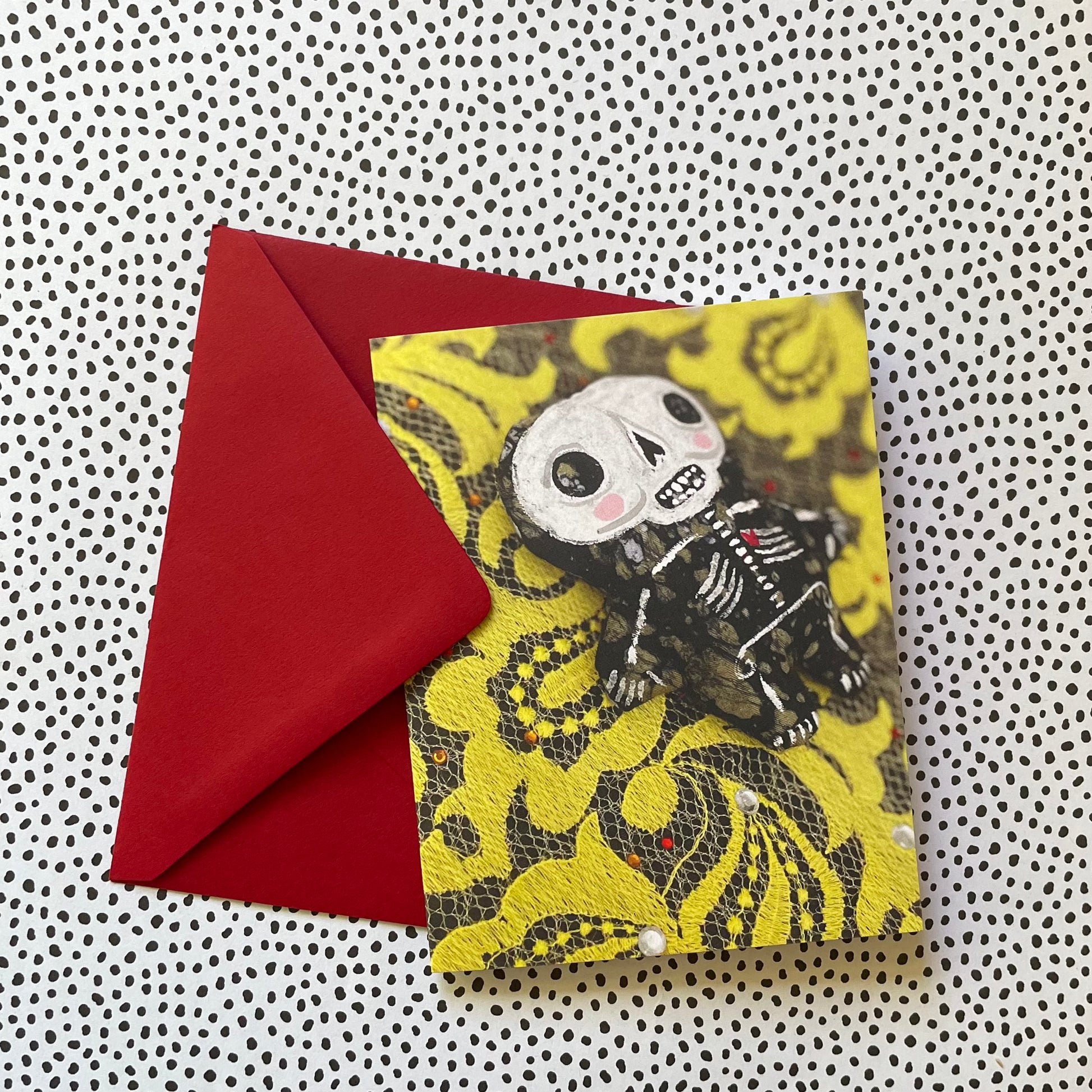 This is a print of one of my skeletons I’ve made throughout the years. I made it into a greeting card. I don’t know about you but I still love getting snail mail!